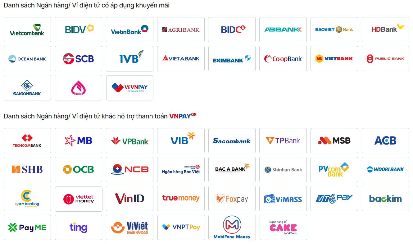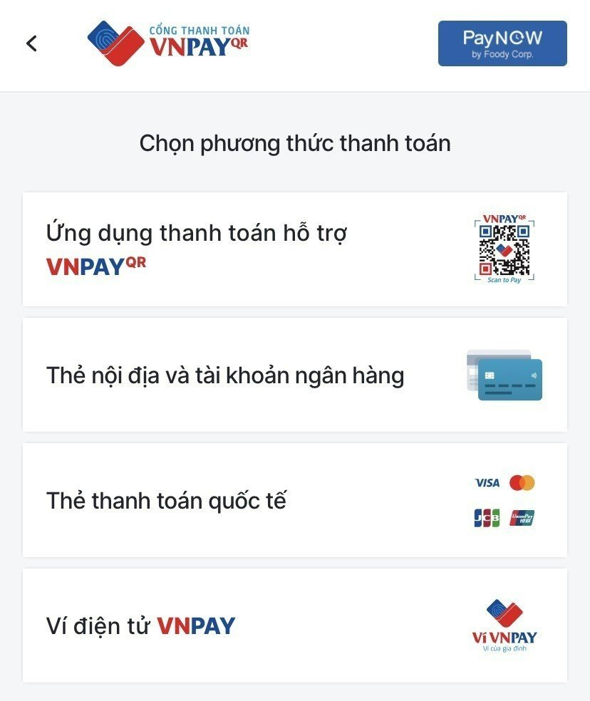 Các phương thức thanh toán qua VNPAY